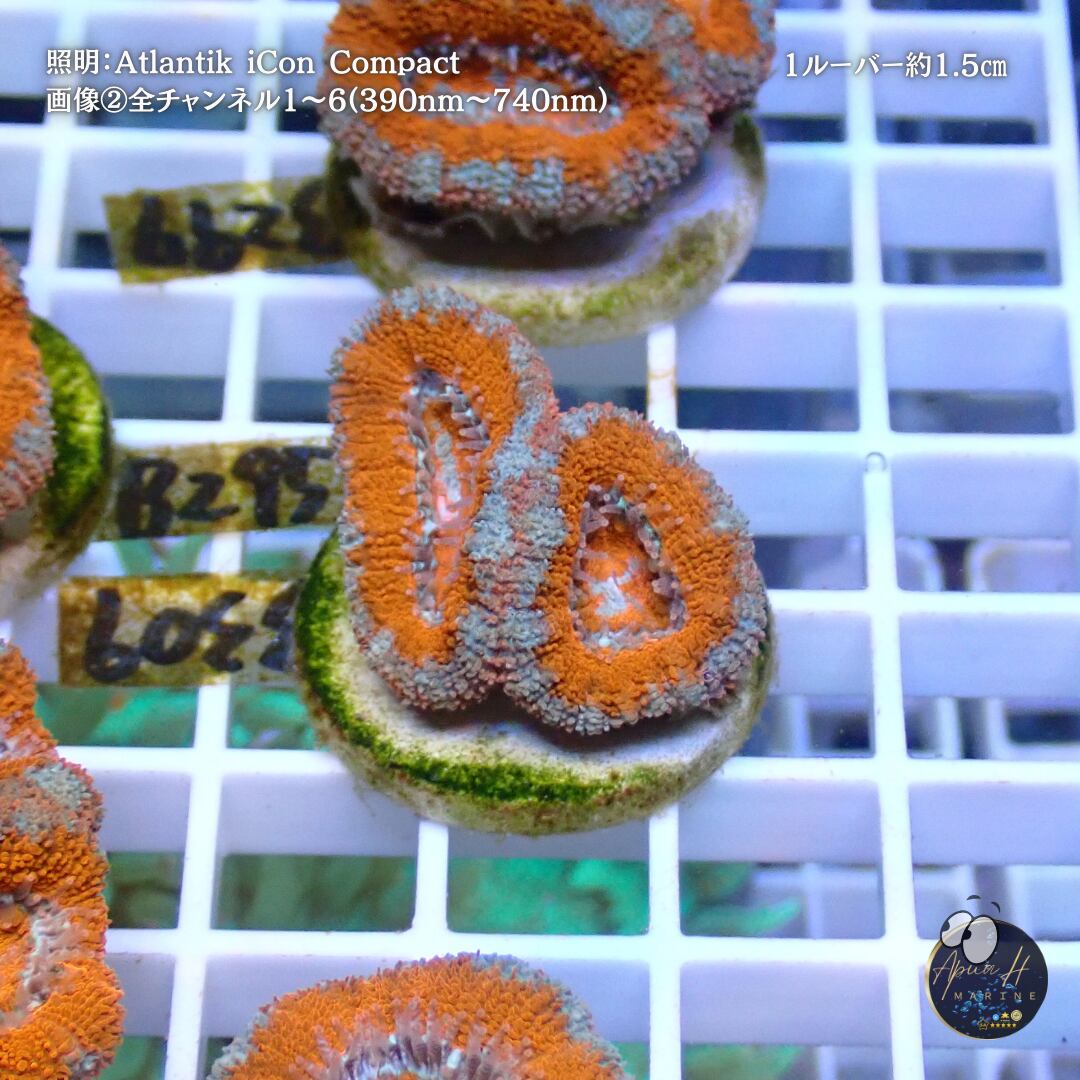 ・ブルーチャンネル下ではオレンジ部分が強く蛍光発色し、グリーンが縁取りのように浮かび上がるハイグロウ個体