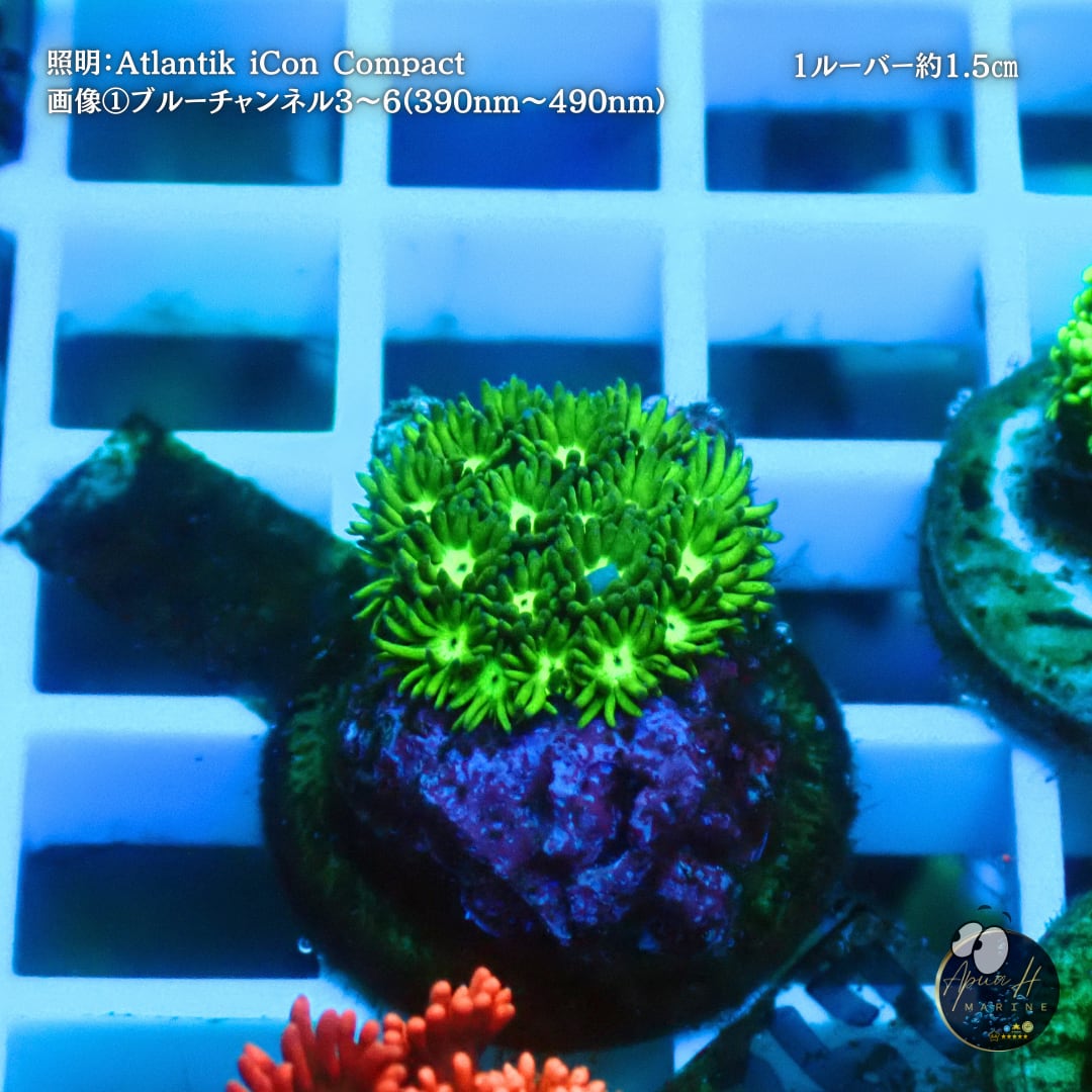・全チャンネル点灯時には落ち着いたモスグリーン調になり、他のLPSやソフトコーラルとの組み合わせもしやすいナチュラルなカラー