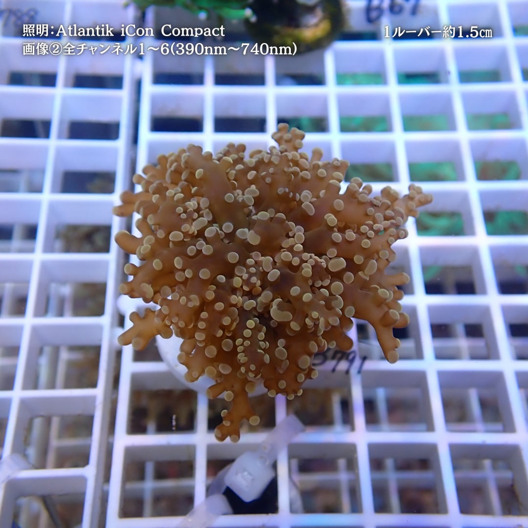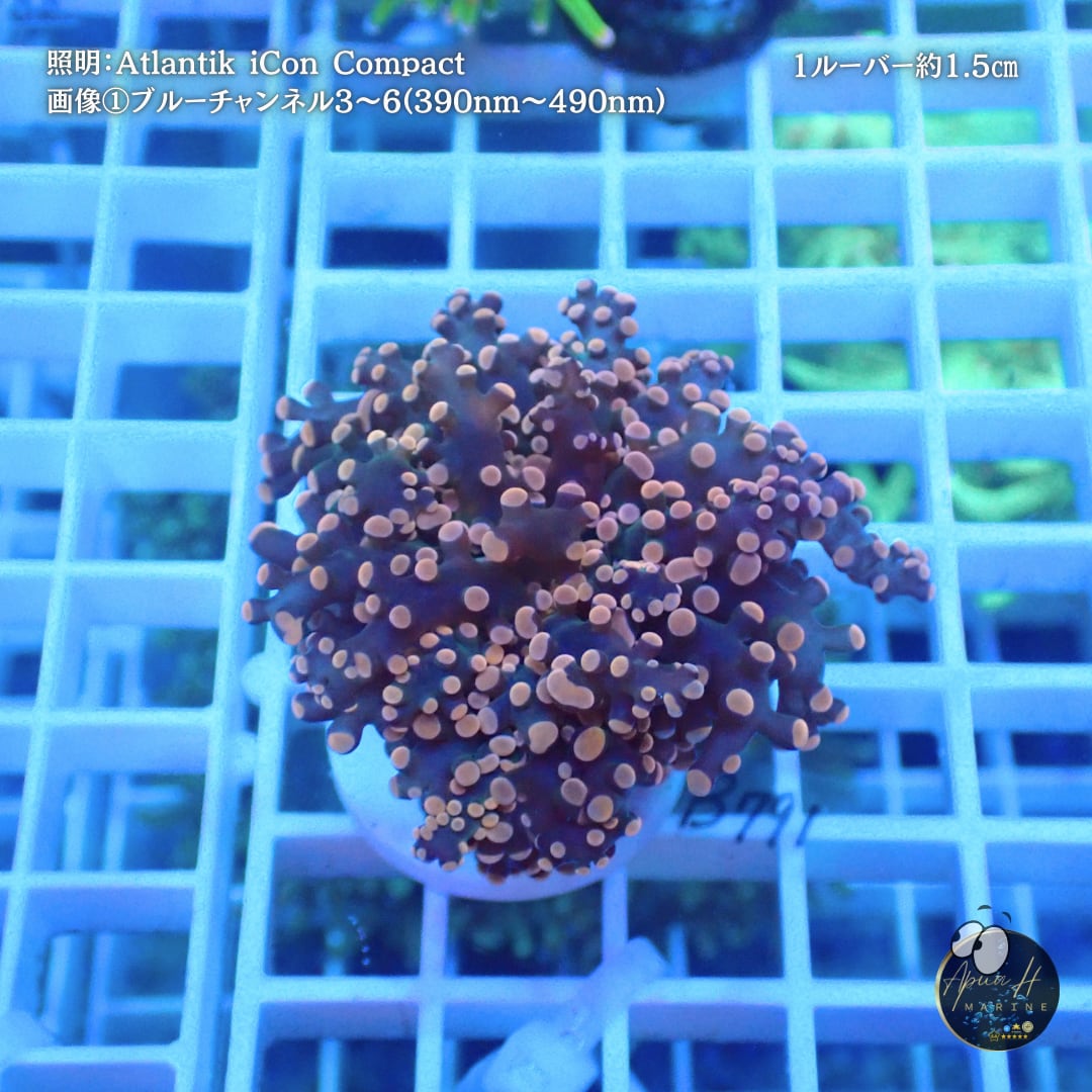 ・ポリプカラー:ブルーチャンネルでは、オリーブ~ダークブラウンのボディに先端がミルキーピンク~パステルホワイトにふんわり発光し、やわらかなキャンディカラーのコントラストを楽しめます。